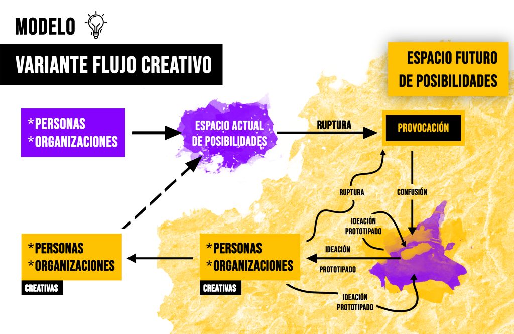 EN EL SIGUIENTE ESQUEMA SE APRECIA UNA VERSIÓN DEL MODELO DE FLUJO CREATIVO QUE UTILIZAMOS EN NUESTRAS ACTIVIDADES.